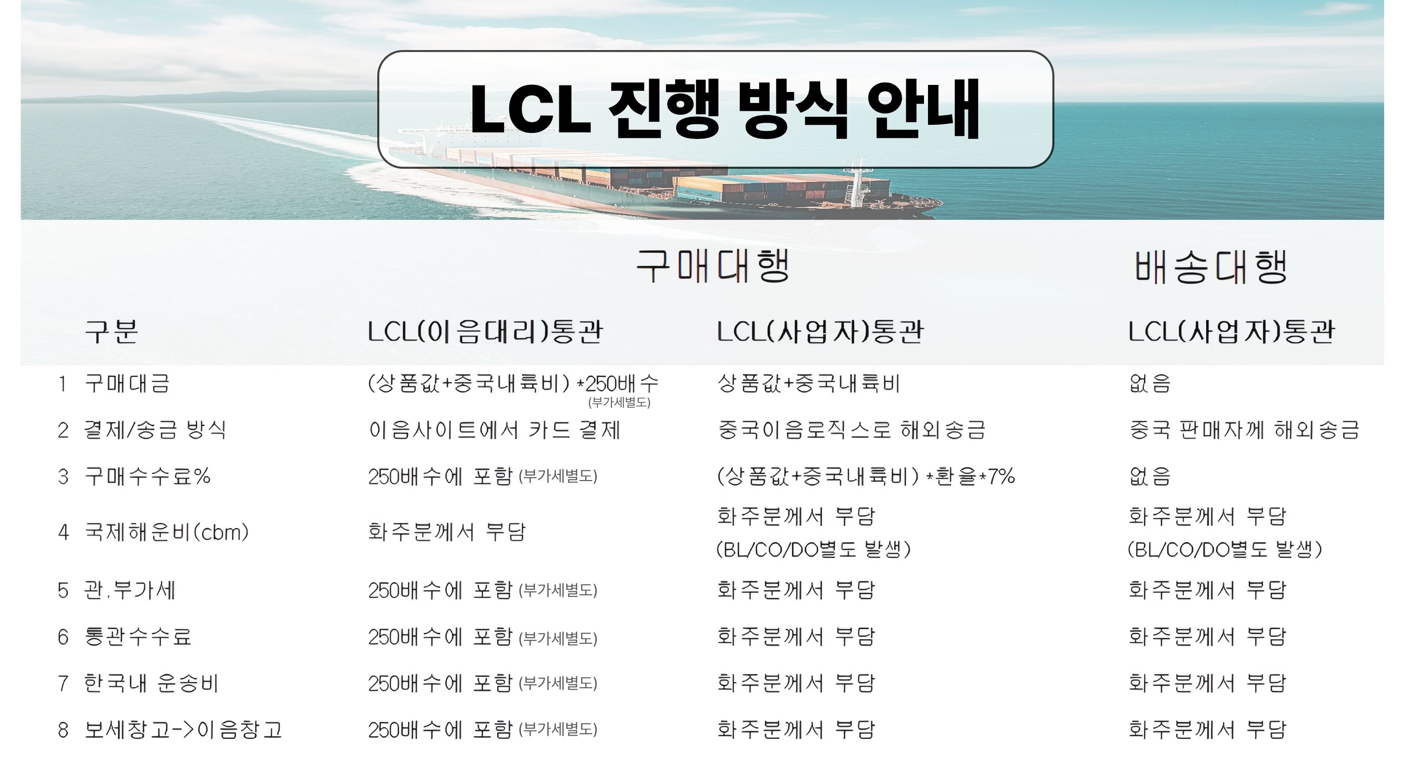 LCL구매대행,배송대행 안내사항